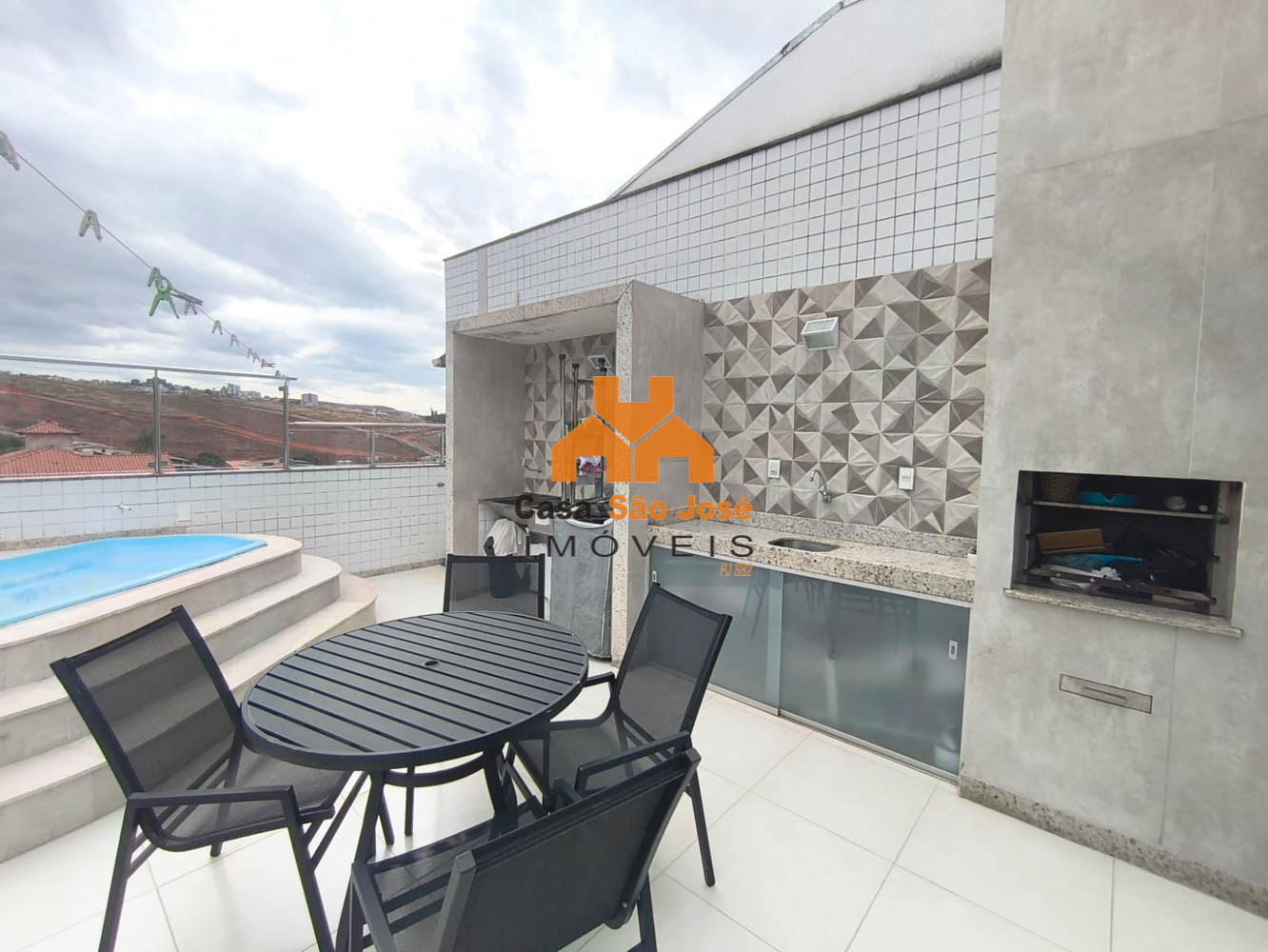 Área Gourmet descoberta com churrasqueira e piscina